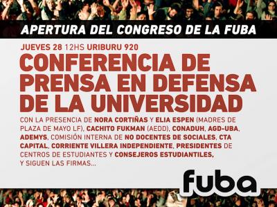 Asimismo, sostuvo que “no hay nada más ridículo que plantear que la FUBA tiene un acuerdo con los medios de comunicación para difamar la UBA. Ellos con su corrupción son los que la difaman y destruyen, la FUBA defiende la universidad pública".