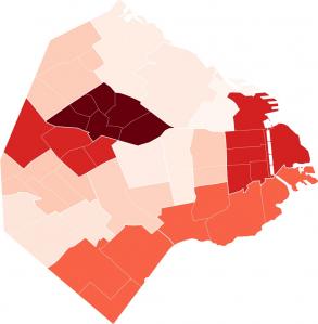 Por el contrario, dentro de la Ciudad de Buenos Aires, Recoleta (Comuna 2), Caballito (Comuna 6), Almagro, Boedo (Comuna 5), Belgrano, Colegiales y Nuñez (Comuna 13) son los barrios que menos casos de dengue por habitante tienen.