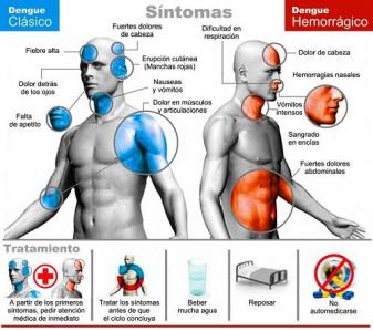 Ante la presencia de síntomas como fiebre alta, dolores musculares o articulares, decaimiento, dolor de cabeza (zona de los ojos), erupciones en la piel, náuseas, vómitos o dolor abdominal, hay que acudir a un centro de salud.